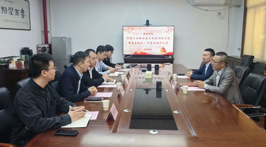 邀请甘肃工业职业技术学院测绘学院院长薛亚宏、学院办公室主任陈维林一行到校洽谈交流。学院副院长王利、测绘系副主任杨成生、学工办主任段少帅及辅导员王儒豪、刘文星参与本次交流会,会议由王利副院长主持。