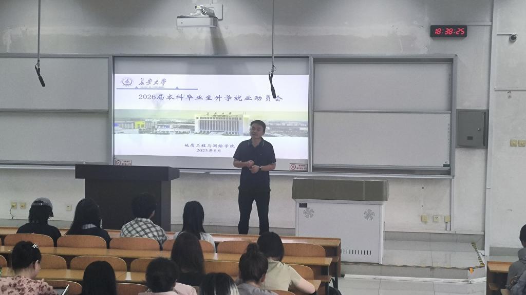 测绘科学系于明远2201召开2026届毕业生升学就业指导专题教育会。测绘科学系副主任舒宝、测绘科学系教师丛铭、2022级辅导员陈子毅、2022级辅导员刘文星,2021级优秀学生代表以及2022级测绘工程、遥感科学与技术专业全体学生参加了本次会议。