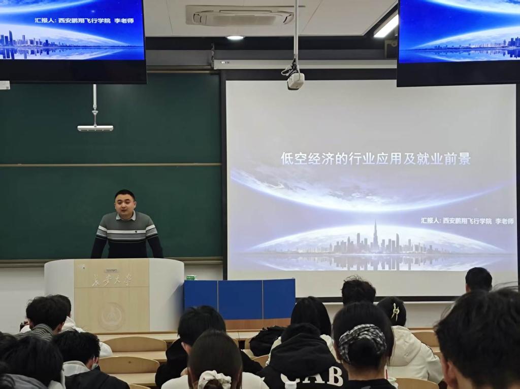 “低空经济不是遥不可及的概念,它已经来到我们身边,并且正在改变未来的工作和生活方式”。2026年4月2日下午,“低空经济行业应用及就业前景”科普分享会在长安大学渭水校区WH1306成功举办。本次科普讲座邀请了来自腾翔飞行学院的李枭老师作为主讲人,讲座由辅导员杨海城主持。