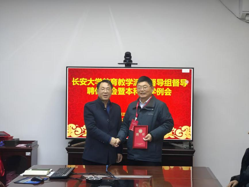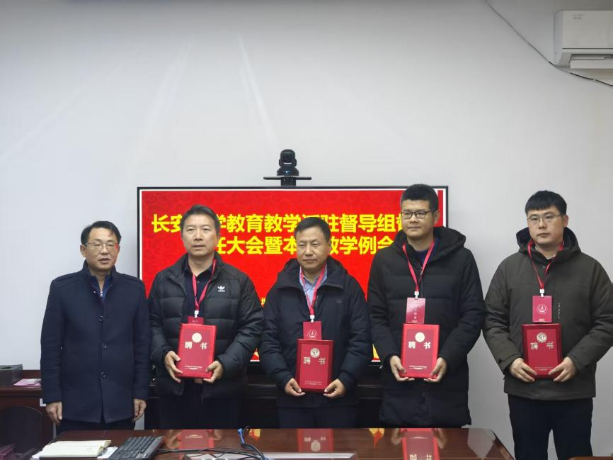 会上,鲁宝亮副院长宣读了《关于聘任长安大学2025年教育教学督导的决定》,代表学校正式聘任范高功、翟越、包乾宗、崔福庆、胡羽丰五位教师为教育教学督导派驻组督导。黄达院长为督导组成员颁发聘书和听课证,并作重点讲话。他强调,督导老师是学院推荐、学校遴选的优秀教师代表,建议督导老师们能够“以导为主、督导结合”,聚焦本科、研究生教学问题发现与反馈,希望通过组织专题研讨,着力提升老师们课件制作水平与讲课艺术,切实助力教师成长。