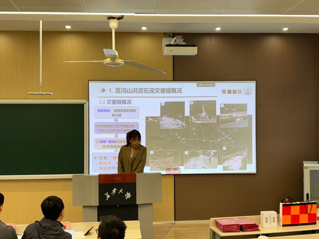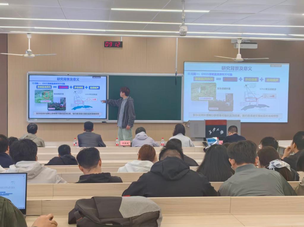 汇报中,研究生们分别从地质灾害评价、智慧安全、大地测量、摄影测量与遥感、深部地球物理勘探、人工智能在地学探测中的应用、流域地质环境演化、生态修复技术、AI交叉学科创新应用等方面展开汇报,充分展现了学院研究生扎实的科研功底和敏锐的学科洞察力。