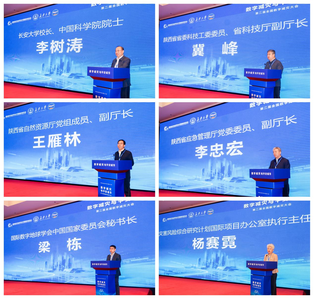 中国科学院院士、长安大学校长李树涛,中国科学院院士、兰州大学教授黄建平,中国地震局地质研究所所长单新建,陕西省委科技工委委员、省科技厅副厅长冀峰,陕西省自然资源厅党组成员、副厅长王雁林,陕西省应急管理厅党委委员、副厅长李忠宏,国际数字地球学会中国国家委员会秘书长梁栋,灾害风险综合研究计划国际项目办公室执行主任杨赛霓,国际数字地球学会中国国家委员会数字减灾专委会主任王力哲等出席开幕式。开幕式由长安大学副校长李振洪主持。