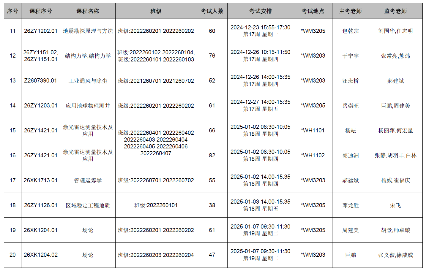 本学期第11周后结课的麻将胡了门户网站 开课课程期末考试监考安排已发布,监考安排学院已经在本科教务系统中填报完成(监考教师可同时在本科教务系统中查看监考安排)。为确保考试平稳顺利进行,学院已将相关监考工作安排表上传到附件中,请各位老师及时下载查阅,并按时完成监考工作。