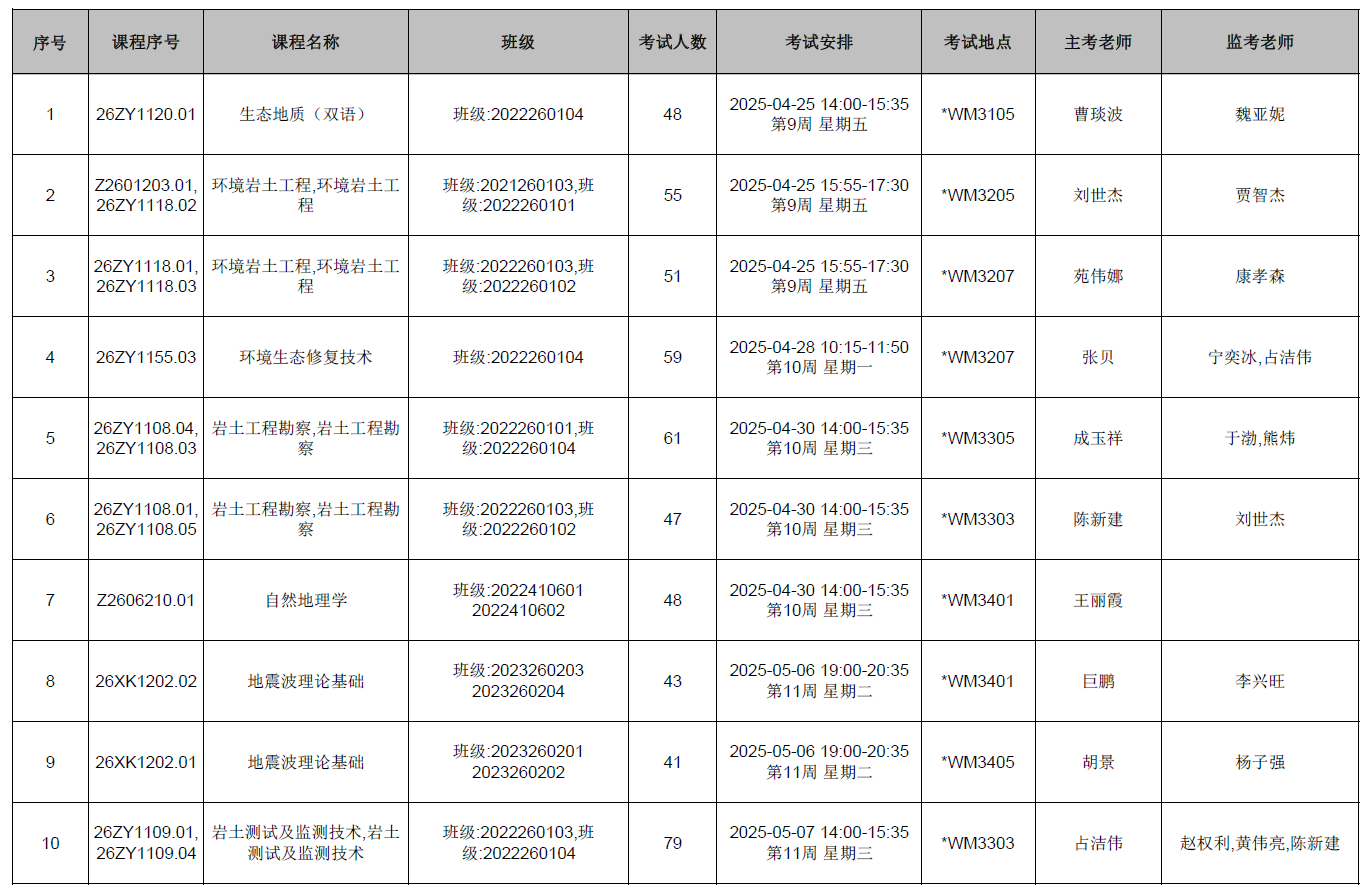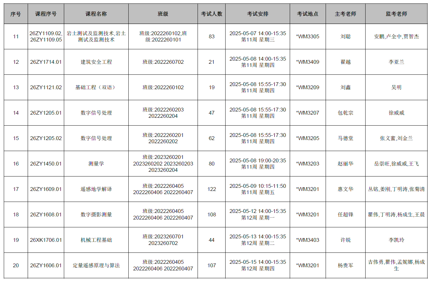 本学期第9周前结课的麻将胡了门户网站 开课课程期末考试监考安排已发布,监考安排学院已经在本科教务系统中填报完成(监考教师可同时在本科教务系统中查看监考安排)。为确保考试平稳顺利进行,学院已将相关监考工作安排表上传到附件中,请各位老师及时下载查阅,并按时完成监考工作。