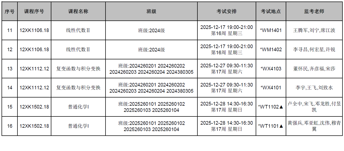 理学院、资源学院开课部分课程期末考试监考安排已发布,监考安排学院已经在本科教务系统中填报完成(监考教师可同时在本科教务系统中查看监考安排)。为确保考试平稳顺利进行,学院已将相关监考工作安排表上传到附件中,请各位老师及时下载查阅,并按时完成监考工作